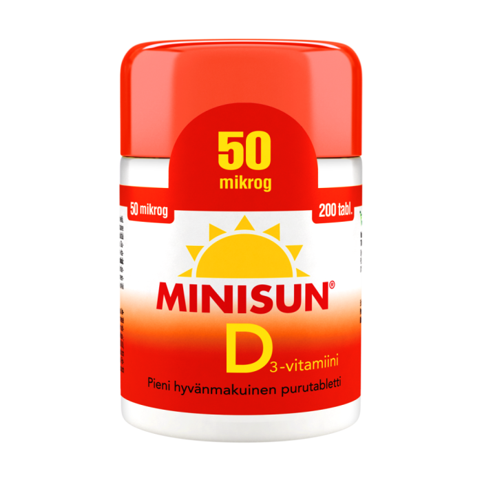 Minisun D-vitamiini 50 mikrog 200 kpl